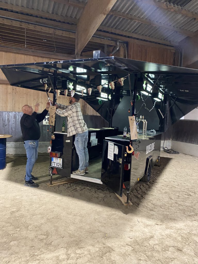 Für die Teilnehmer und Zuschauer wird es kalte und warme Köstlichkeiten geben. Aus dem beheizten Reiterstübchen hat man die perfekte Sicht in die Vorbereitungshalle.