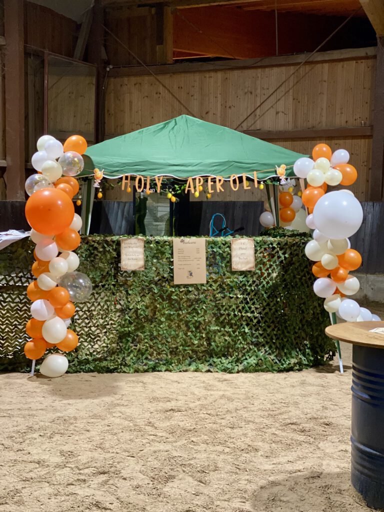 Da der Sommer 2024 uns leider nicht ganz in die Karten gespielt hatte, wurde kurzerhand umdisponiert und das Fest in die Reithalle verlegt. Liebevoll wurde diese mit Girlanden, Blumen und Deko geschmückt.