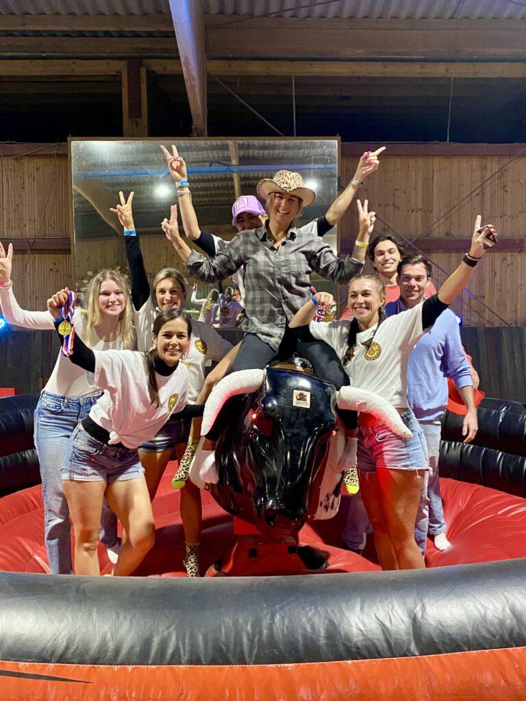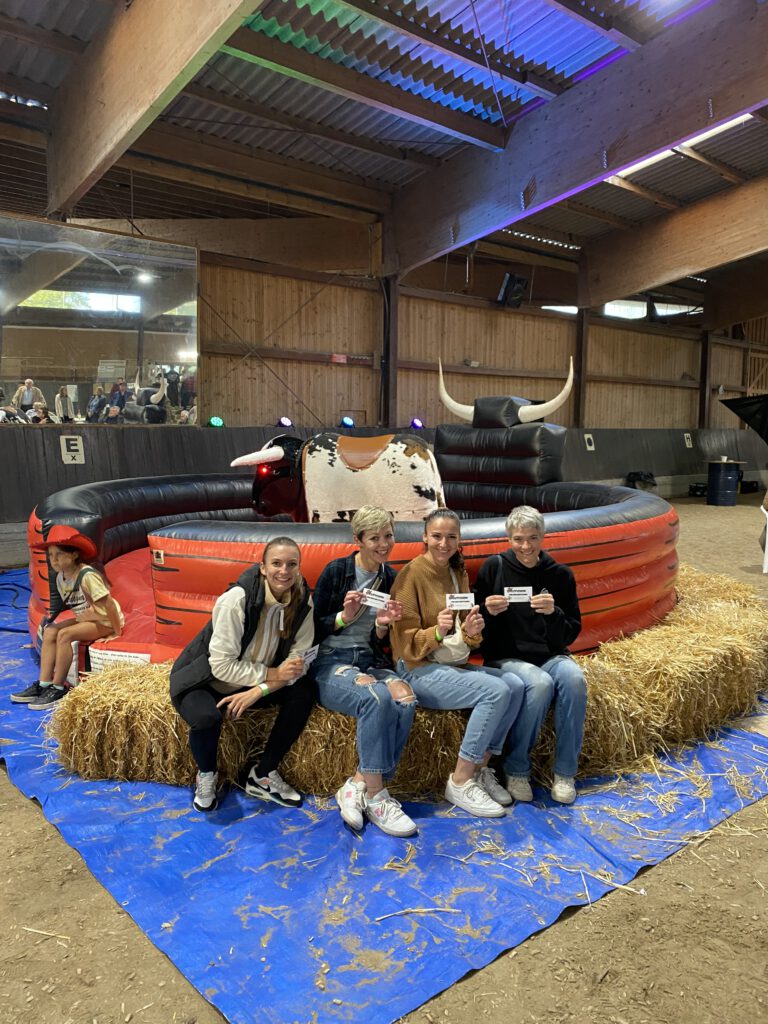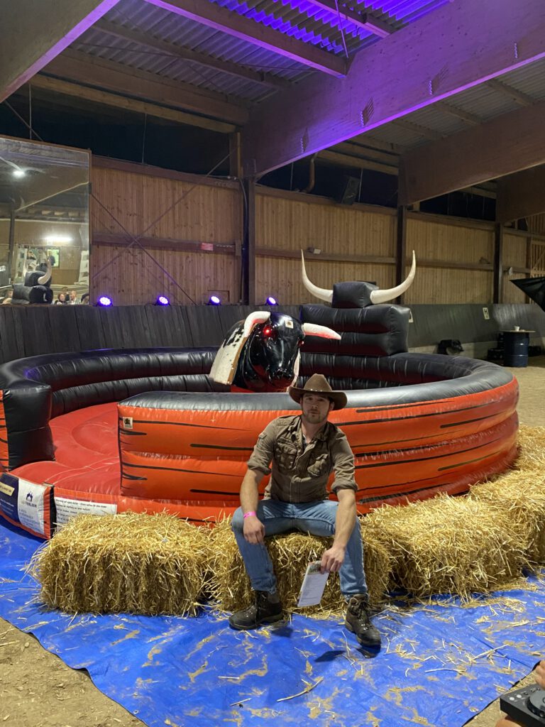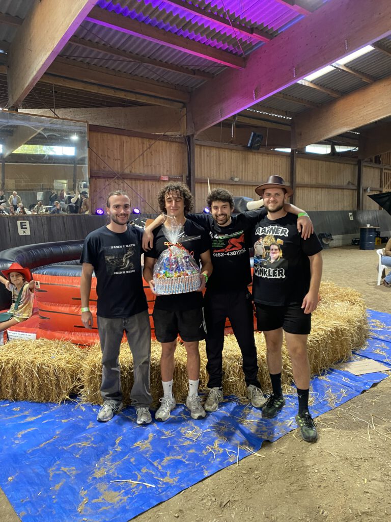 Um 15 Uhr fiel schließlich der Startschuss und unsere Ortsmeisterschaft im Bullriding begann. Starke 16 Teams hatten sich in die Starterliste eingetragen. Jeder Reiter durfte ein paar Probesekunden auf unserem Bullen sitzen, bevor es wirklich los ging. Gleiche Chancen für alle, 1 Ritt pro Reiter! Diese Sekundenzahl zählte schließlich ins Endergebnis: 4 Reiter je Team mit einem Streichergebnis. Wir sahen unglaubliche Ritte, mit toller Körperbeherschung auf unserem wilden Bullen, sogar in der höchsten Stufe. Andere fielen leider bereits in Stufe 1 ins Luftbett, aber Spaß hatte wohl jeder unserer Reiter